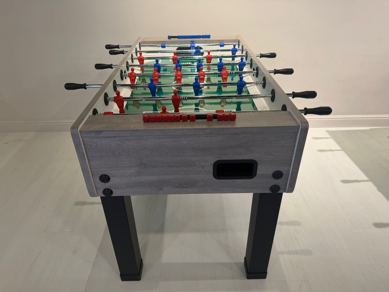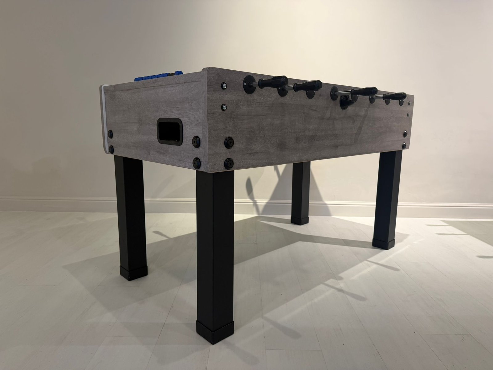 Il rovere grigio è l’attuale veste di G-500, nei suoi trent’anni di vita il calciobalilla più popolare della linea casa Garlando.